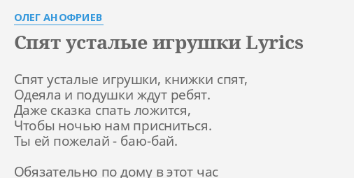 Slova Kolybelnoj Spyat Ustalye Igrushki Iz Spokojnoj Nochi Malyshi