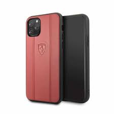 Ferrari Off Track Leather Hard Case With Embossed Lines For Apple Iphone 11 Pro Max Red