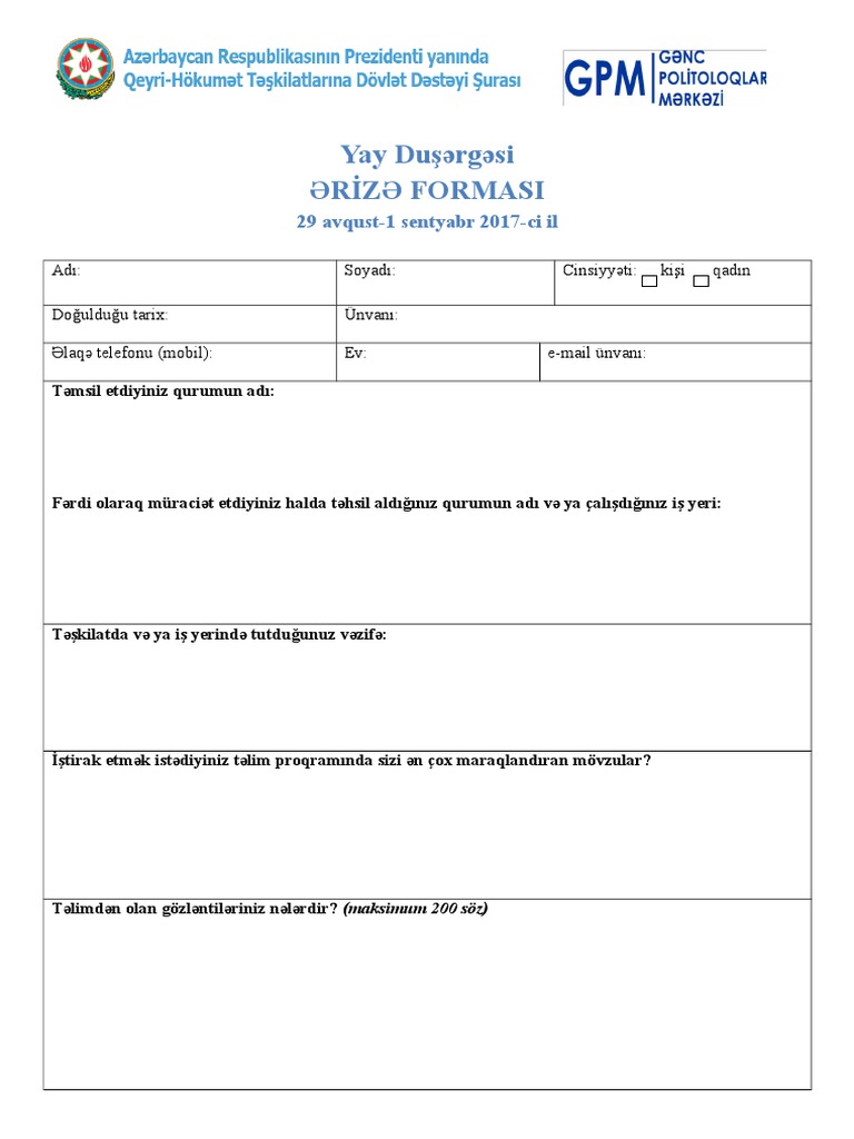 Qəbulun görüşün təyin edilməsi. ərizə anket forması azərbaycanca visas greece in azerbaijan. Işsizlikdən sığorta haqqı üçün hesabat necə hazırlanacaq.