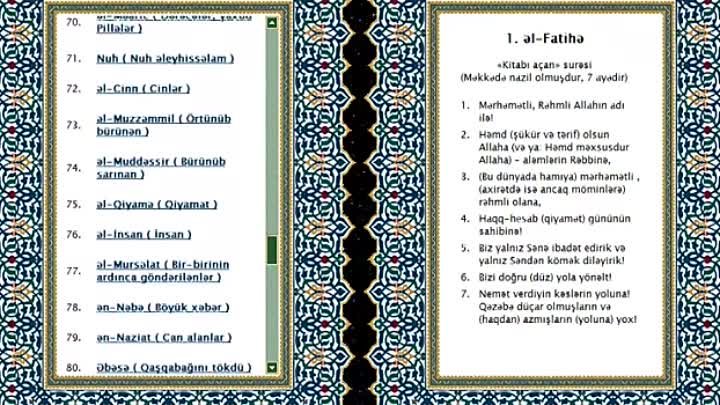 Quran az öz kitabını oxu. Fully translated into azerbaijani version of quran koran with sound. Enjoy the videos and music you love upload original content and share it all with friends family and the world on youtube.