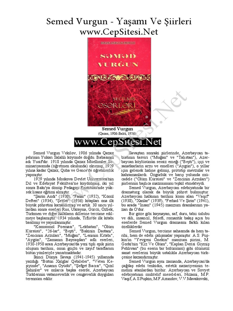 Semed vurgun azerbaycan şiiri. Səməd vurğun ana şeri 1927. Edebiyat bilgileri şair yazar sanatçı öz geçmişleri türk şiiri türkü kitap antolojileri kitap yorum ve analizleri dil bilim güzel ve geleneksel el. Pək cocuğdum yerə gömdülər səni həyata qanadsız atdılar məni.
