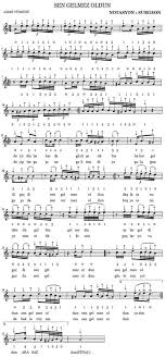 Sen Gelmez Oldun Nota Tab Gitaregitim Net Notalara Dokulmus Muzik Flut Muzik Notalari
