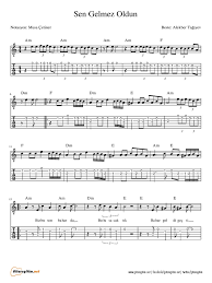 Sen Gelmez Oldun Nota Tab Notalara Dokulmus Muzik Muzik Sarkilar