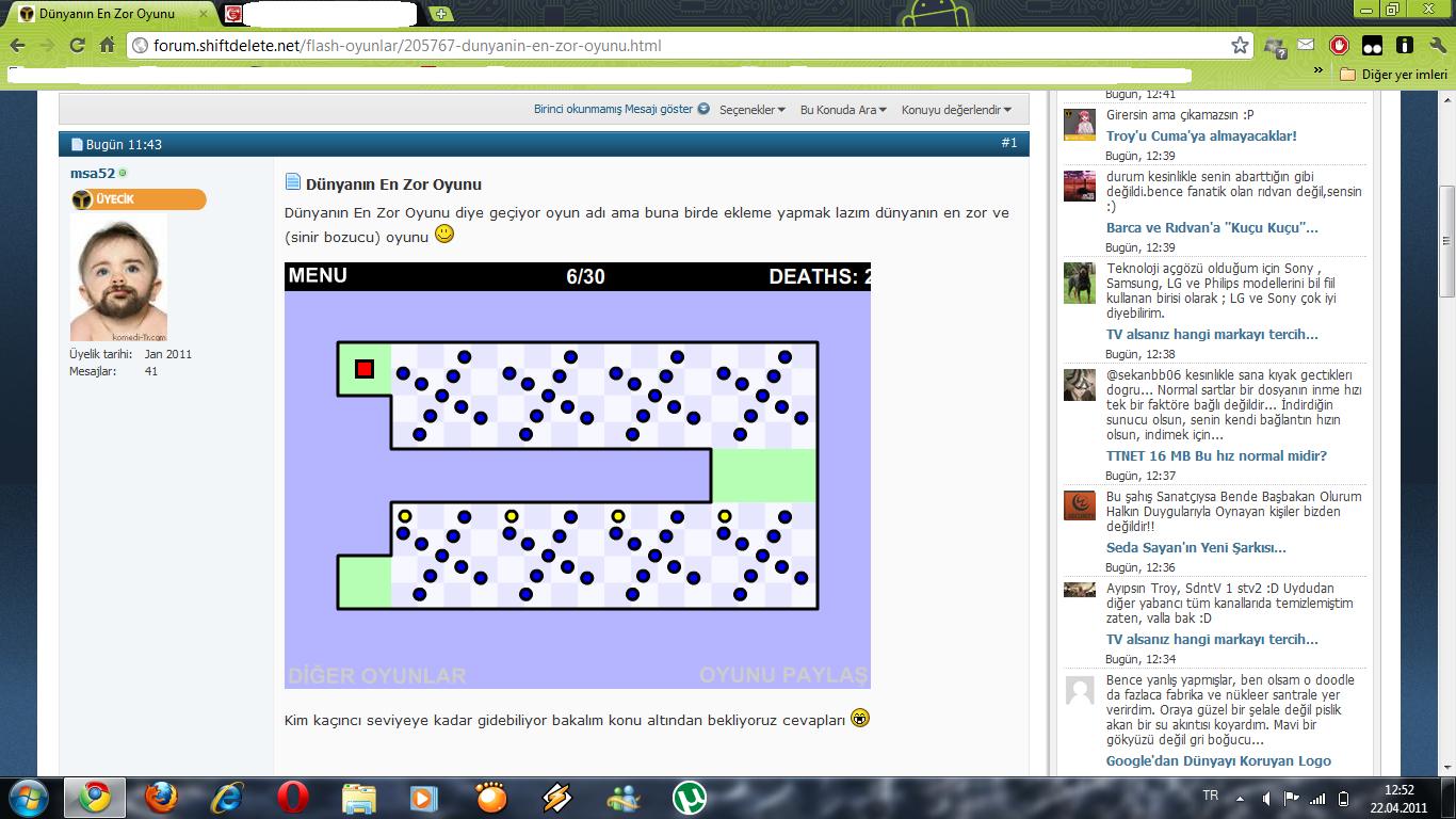 Sinir bozucu dünyanın en zor oyunu. Oyuna başladığınızda ilk birkaç bölümde nasıl oynamanız gerektiğini öğrenebilirsiniz. Oyunu klavye yön tuşlerini kullanarak oynayabilirsiniz. Dünyanın en zor ve sinir bozucu oyunu sizi bekliyor.