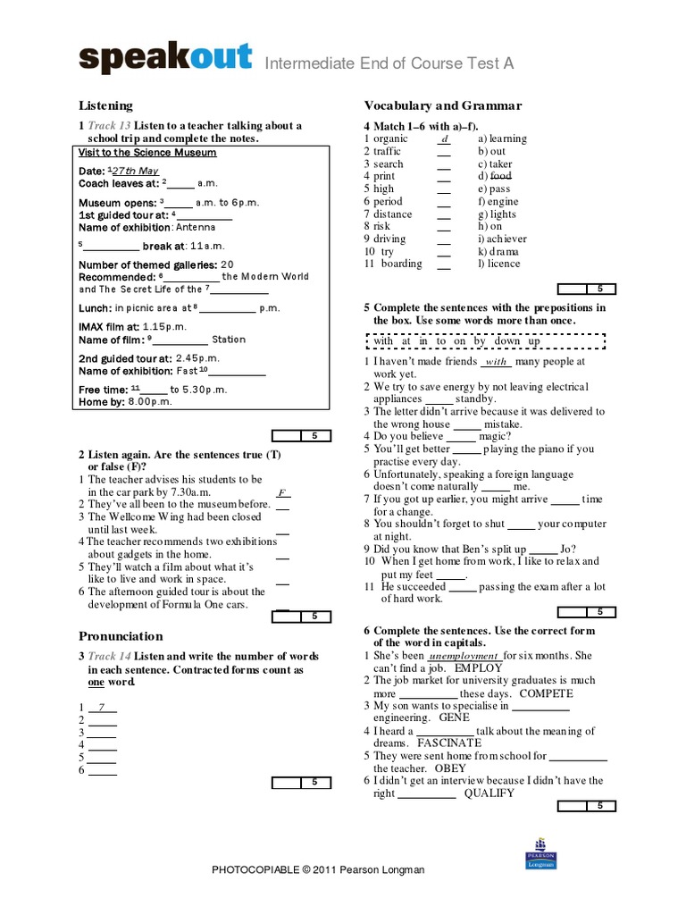 Speak out intermediate tests answer key. New headway fourth edition pre intermediate test book download unit test 1 to 12 traveller pre intermediate unit 3 test solutions pre intermediate test unit 3 a intermediate progress test unit 3 upstream intermediate progress test unit 6 solutions upper. New english file intermediate test booklet with key. Download view speakout 2nd edition advanced answer key as pdf for free.