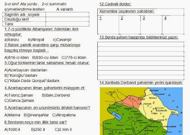 Atropatena dövlətinin azərbaycan tarixində yeri və rolu sual cavablar testlər. Tarix üzrə vi sinif testləri aşağıdakı bölmələrə bölünür.