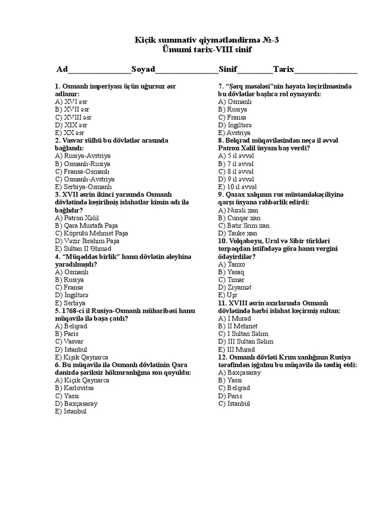 Umumi Tarix 8 Ci Sinif