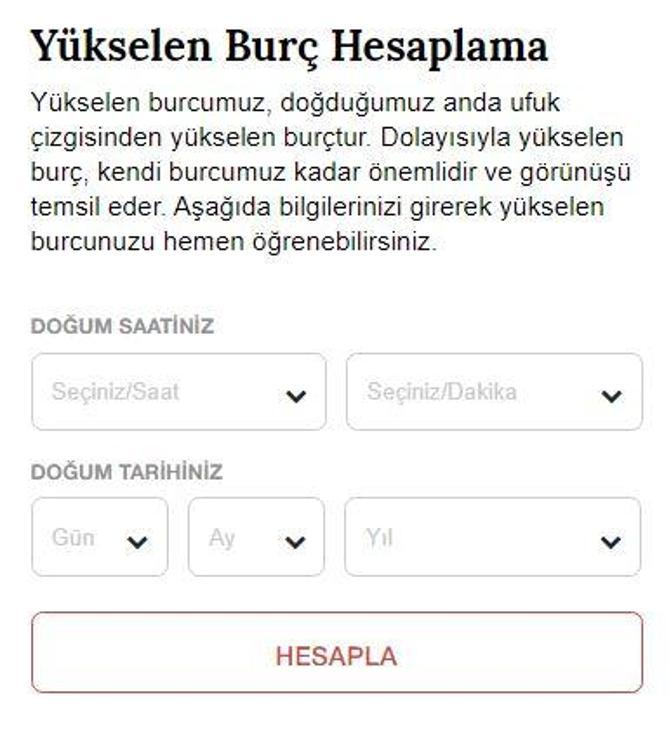 Yukselen Burc Hesaplama
